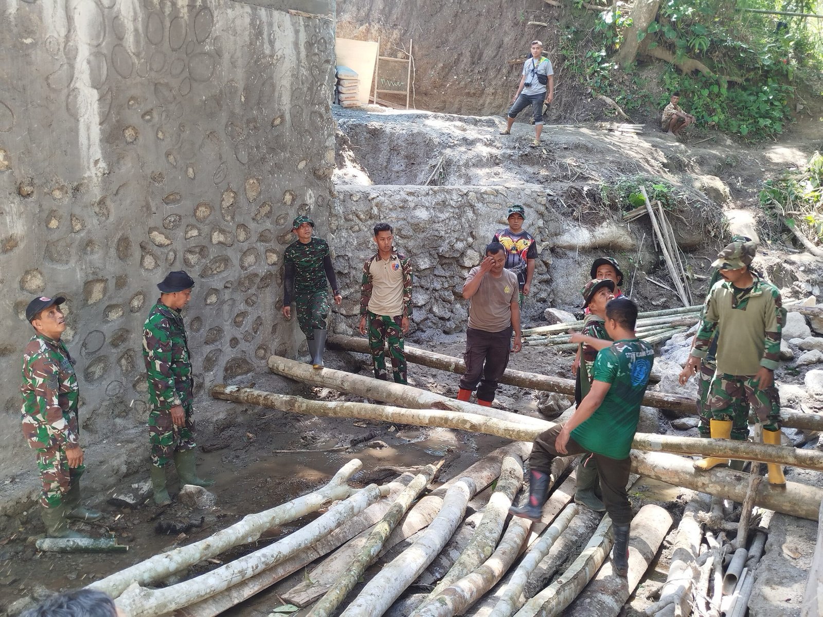 Diskusi ini dilakukan sebagai bagian dari perencanaan matang sebelum pelaksanaan pengecoran lantai jembatan. Para prajurit mempertimbangkan berbagai aspek teknis, seperti kekuatan kayu, posisi pemasangan, serta ketahanan terhadap beban agar struktur jembatan dapat bertahan lama dan memberikan manfaat maksimal bagi masyarakat.