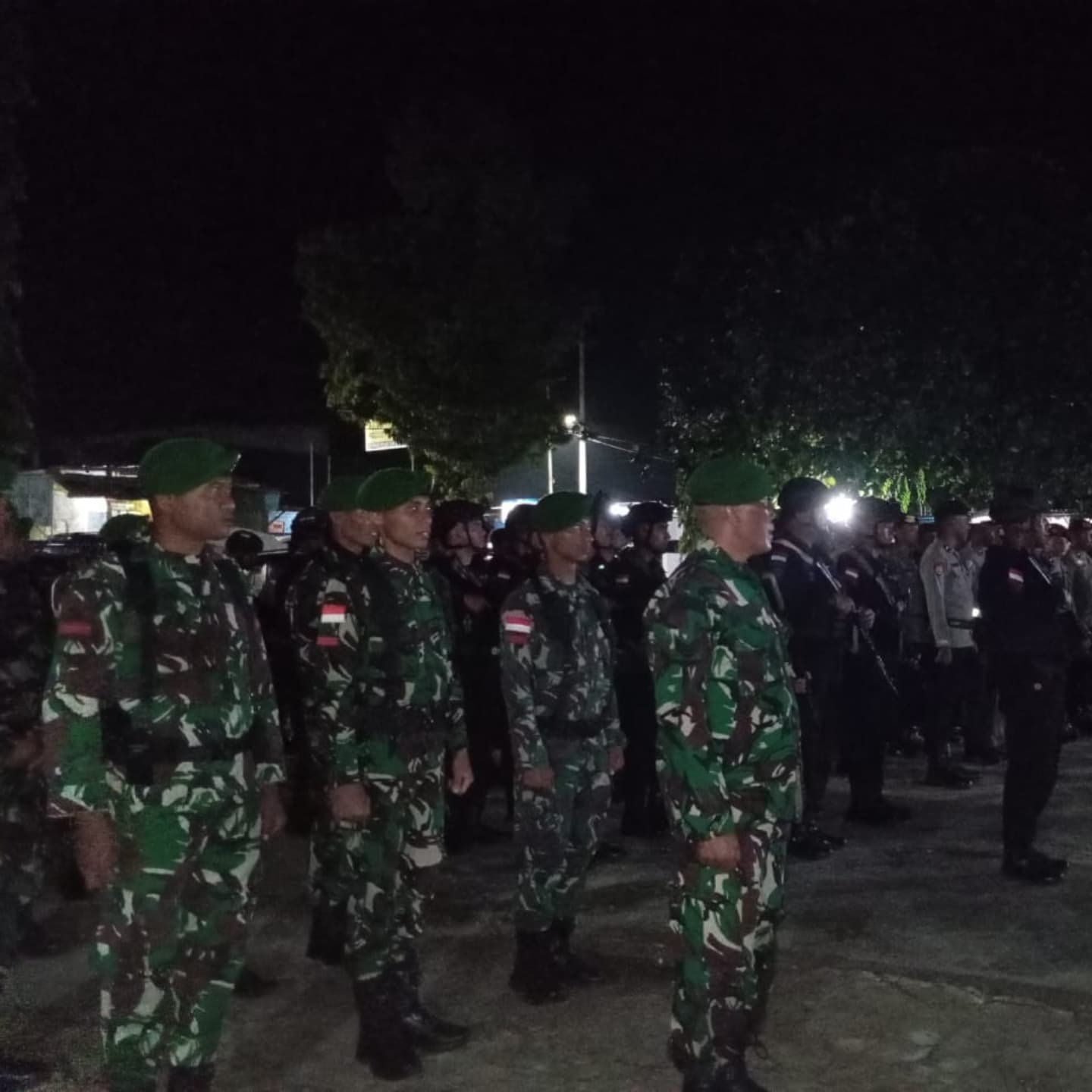 Personil Kodim 1629/SBD mengikuti Apel Gabungan dalam rangka pengamanan malam Pergantian Tahun Baru 2024 -2025 bertempat di Polsek Loura Dusun Waitabula, Kecamatan Laoura, Kabupaten Sumba Barat daya, Rabu (01/01/2025).