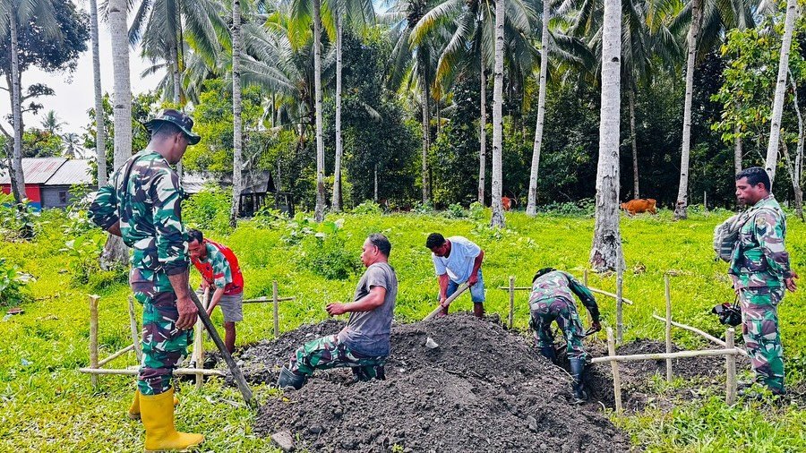 Personil Satgas TMMD ke 124 Kodim 1502/Masohi Ta. 2025 melaksanakan Pembangunan MCK yang dilaksanakan bersama sama dengan masyarakat yang bertemoat di Desa Waraka Kec. Teluk Elpaputih Kab. Malteng. Jumat (09/05/2025).