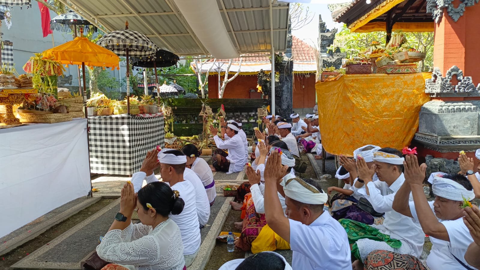 Upacara keagamaan piodalan kali ini dipuput oleh Ida Perande Istri Gelgel, Griya Pande Banjar Lebah, Semarapura Kangin yang diikuti oleh keluarga besar umat Hindu Kodim 1610/Klungkung yang dipimpin Pjs Pasipers Kapten Cba Nyoman Suryatha.
