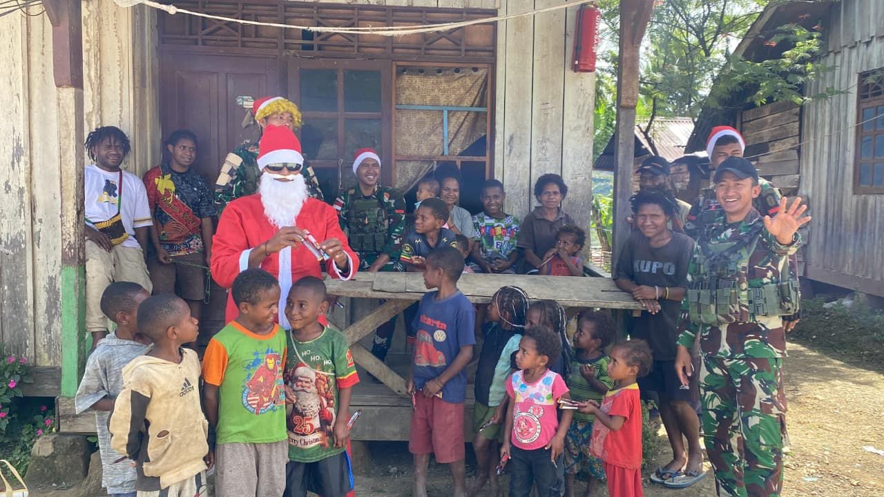 Pos Bulangkop Satgas Yonif 751/VJS Bagikan Bingkisan Natal di Kampung Bulangkop, Warga Sambut Penuh Sukacita