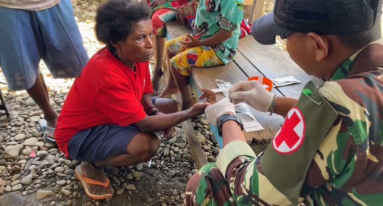 Beringin–Kalomdol, Pegunungan Bintang — Dengan izin dan arahan Danton, Pos Selal Satgas Pamtas RI–PNG Yonif 751/Vira Jaya Sakti (VJS) melaksanakan kegiatan pelayanan pengobatan gratis bagi masyarakat Kampung Beringin dan Kampung Kalomdol. Kegiatan ini bertujuan mendekatkan layanan kesehatan dasar agar warga tidak perlu menempuh perjalanan jauh ke kota saat membutuhkan pertolongan medis. (Jumat,6/2/2026).