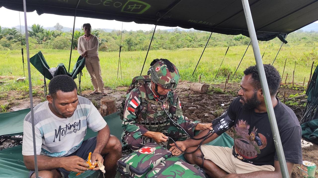 Tarup, Pegunungan Bintang — Pos Tarup Satgas Pamtas RI–PNG Yonif 751/Vira Jaya Sakti (VJS) melaksanakan kegiatan anjangsana bertempat di halaman Kantor Distrik Tarup. Dalam kegiatan tersebut, personel Satgas memberikan bantuan bola kaki kepada masyarakat Distrik Tarup sekaligus membuka layanan pengobatan gratis di tenda pos sebagai upaya mendekatkan pelayanan dasar bagi warga. (Minggu,18/1/2026).