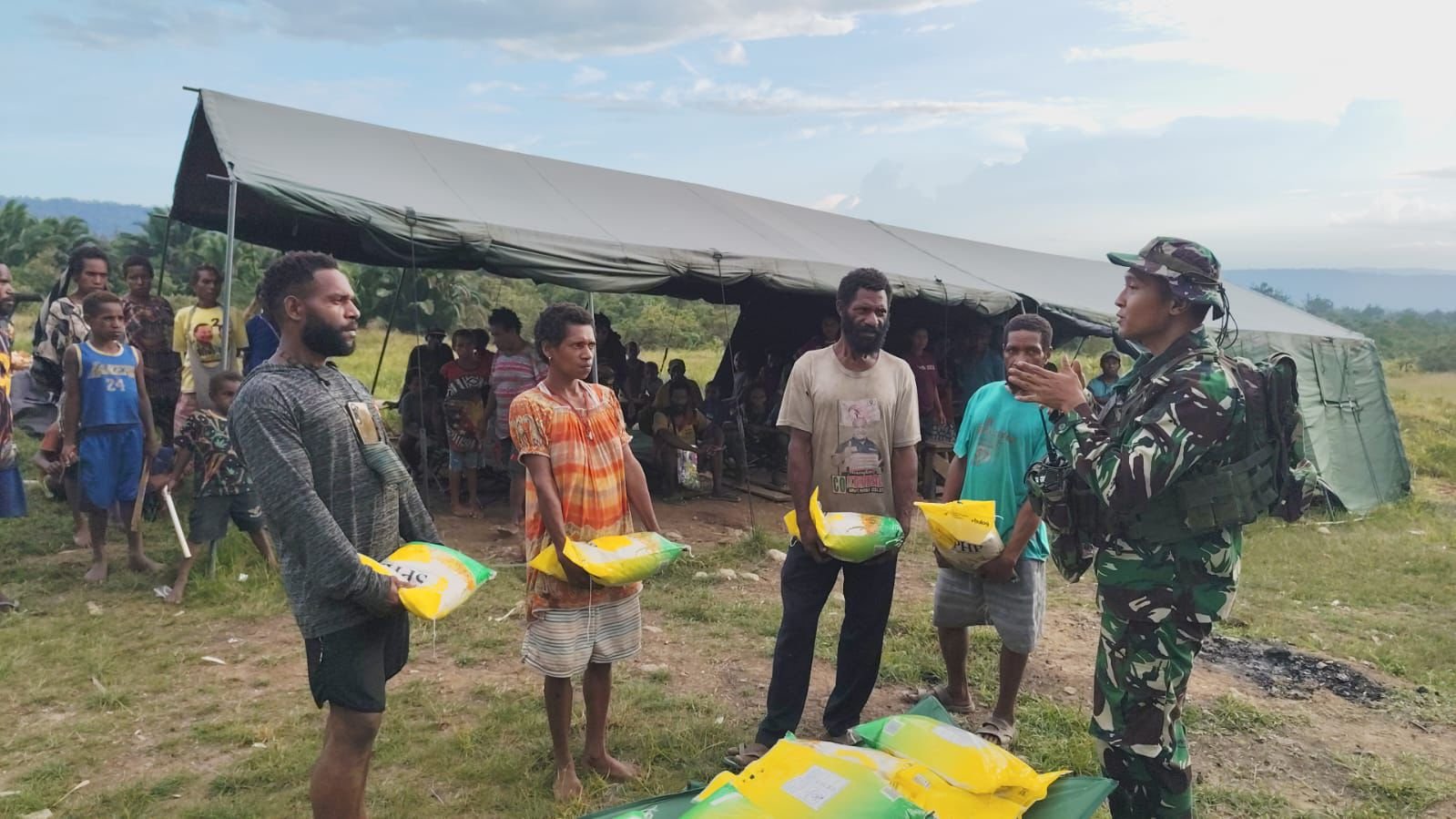 Tarup, Pegunungan Bintang — Pos Tarup Yonif 751/Vira Jaya Sakti (VJS) Satgas Swasembada melaksanakan kegiatan teritorial berupa pembagian sembako kepada masyarakat Tarup. Pembagian dilaksanakan di area Pos Tarup sebagai wujud kepedulian TNI dalam membantu kebutuhan dasar warga sekaligus mempererat kemanunggalan TNI–rakyat di wilayah perbatasan. (Senin,16/3/2026).
