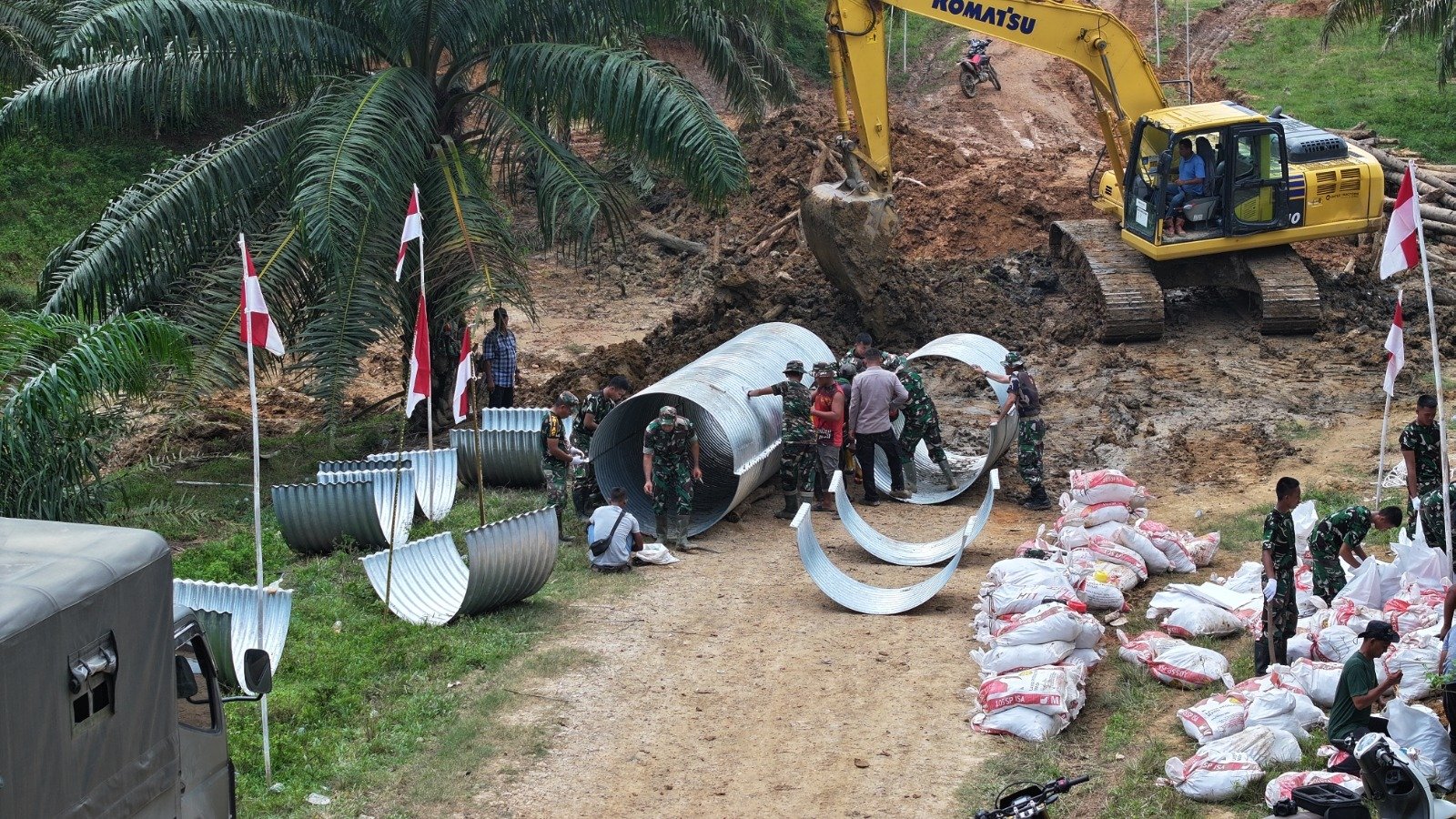 “Keempat titik Jembatan Armco sudah dapat dimanfaatkan warga. Jembatan ini bisa dilintasi kendaraan roda dua maupun roda empat, sehingga aktivitas masyarakat kembali berjalan normal,” ujar Kapten Inf Noverlan, Selasa (23/12/2025).