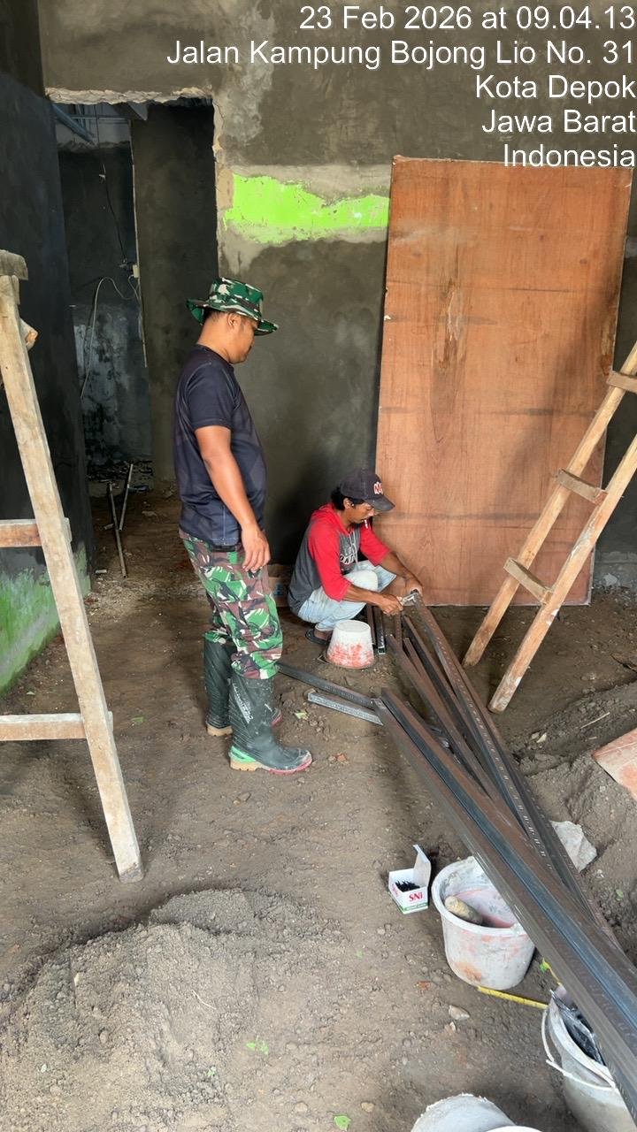 Depok – Program Rehabilitasi Rumah Tidak Layak Huni (RTLH) dalam kegiatan TMMD Ke-127 TA 2026 Kodim 0508/Depok terus menunjukkan perkembangan positif. Hingga hari ke-13 pelaksanaan, Senin (23/2/2026), pengerjaan RTLH milik Ujang Fadilah di Jl. Pamoras RT 04/28, Kelurahan Sukamaju, Kecamatan Cilodong, Kota Depok, telah mencapai 57 persen.