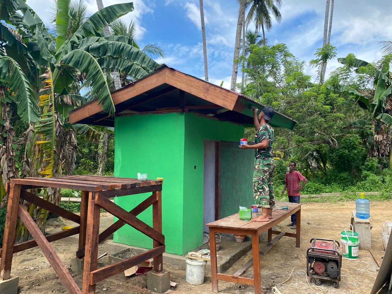 Kaimana – Pada 01/03/2026, TMMD 127 Kampung Sisir, Distrik Kaimana, Kabupaten Kaimana kembali melaksanakan kegiatan pengecetan pada list MCK yang berada di samping Gereja Oraid Labora Kampung Sisir.