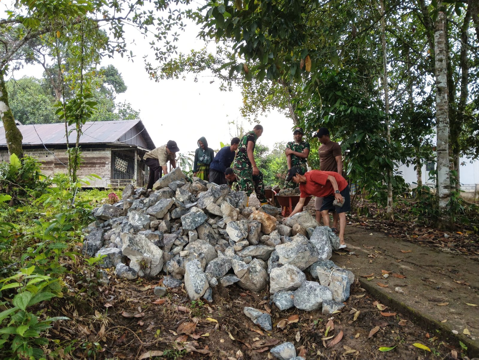 Pelaksanaan kegiatan pembangunan ini melibatkan sinergi antara berbagai unsur, yakni 9 personel TNI, 2 aparat pemerintah desa, serta 10 warga masyarakat setempat. Keterlibatan seluruh elemen tersebut mencerminkan kuatnya semangat gotong royong dalam mendukung percepatan pembangunan infrastruktur di wilayah pedesaan.