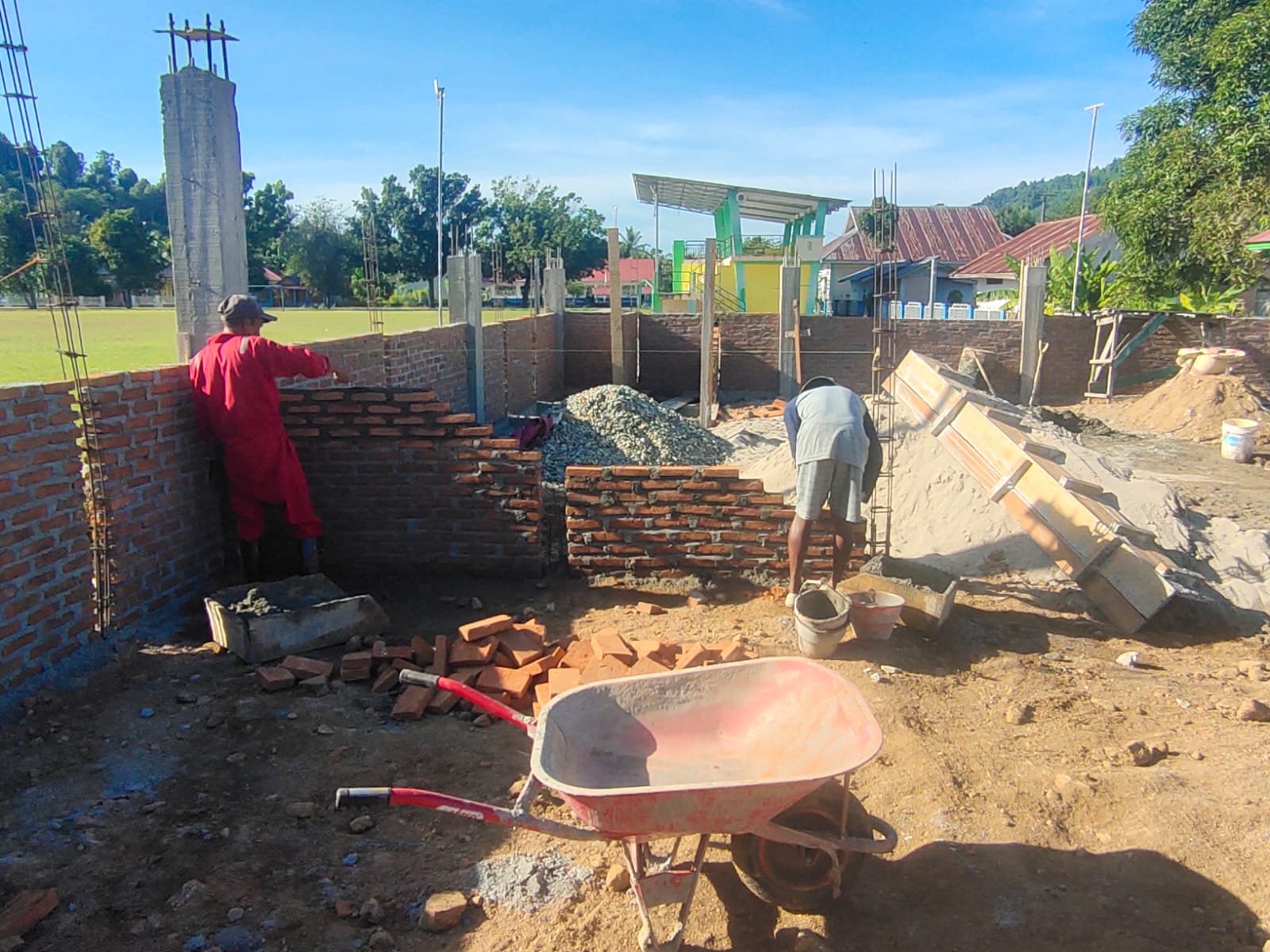Pada hari ini, jenis pekerjaan yang dilaksanakan adalah pemasangan batu bata merah sebagai bagian dari tahapan pembangunan dinding bangunan koperasi. Pekerjaan tersebut dilaksanakan secara bertahap guna memastikan konstruksi bangunan berdiri kokoh dan sesuai dengan spesifikasi yang telah ditentukan.