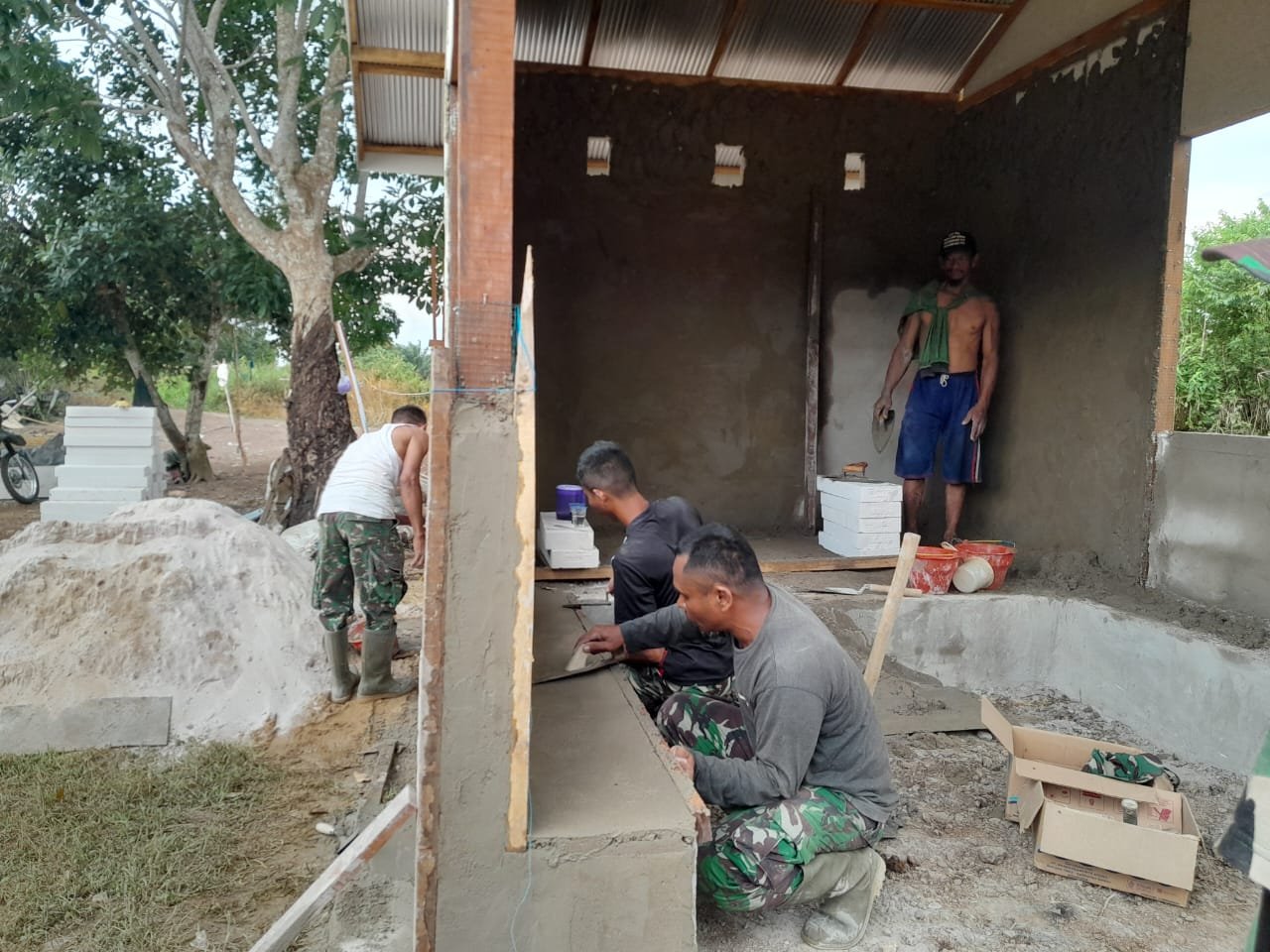 Progres Pembuatan Poskamling TMMD Ke-126 di Desa Tumih Capai Lebih dari 50 Persen