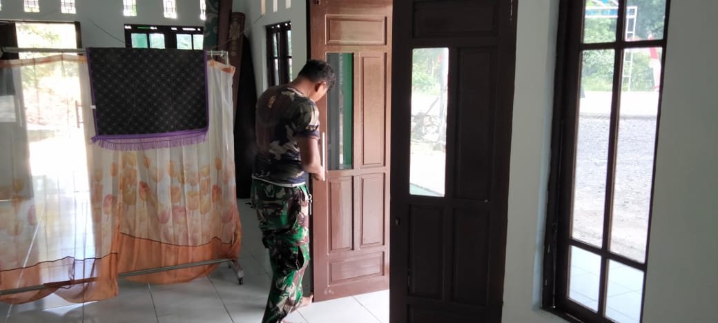 Prajurit TNI bersama warga setempat bekerja secara gotong-royong untuk mempercepat penyelesaian mushola, sehingga fasilitas ibadah ini bisa segera digunakan oleh masyarakat.