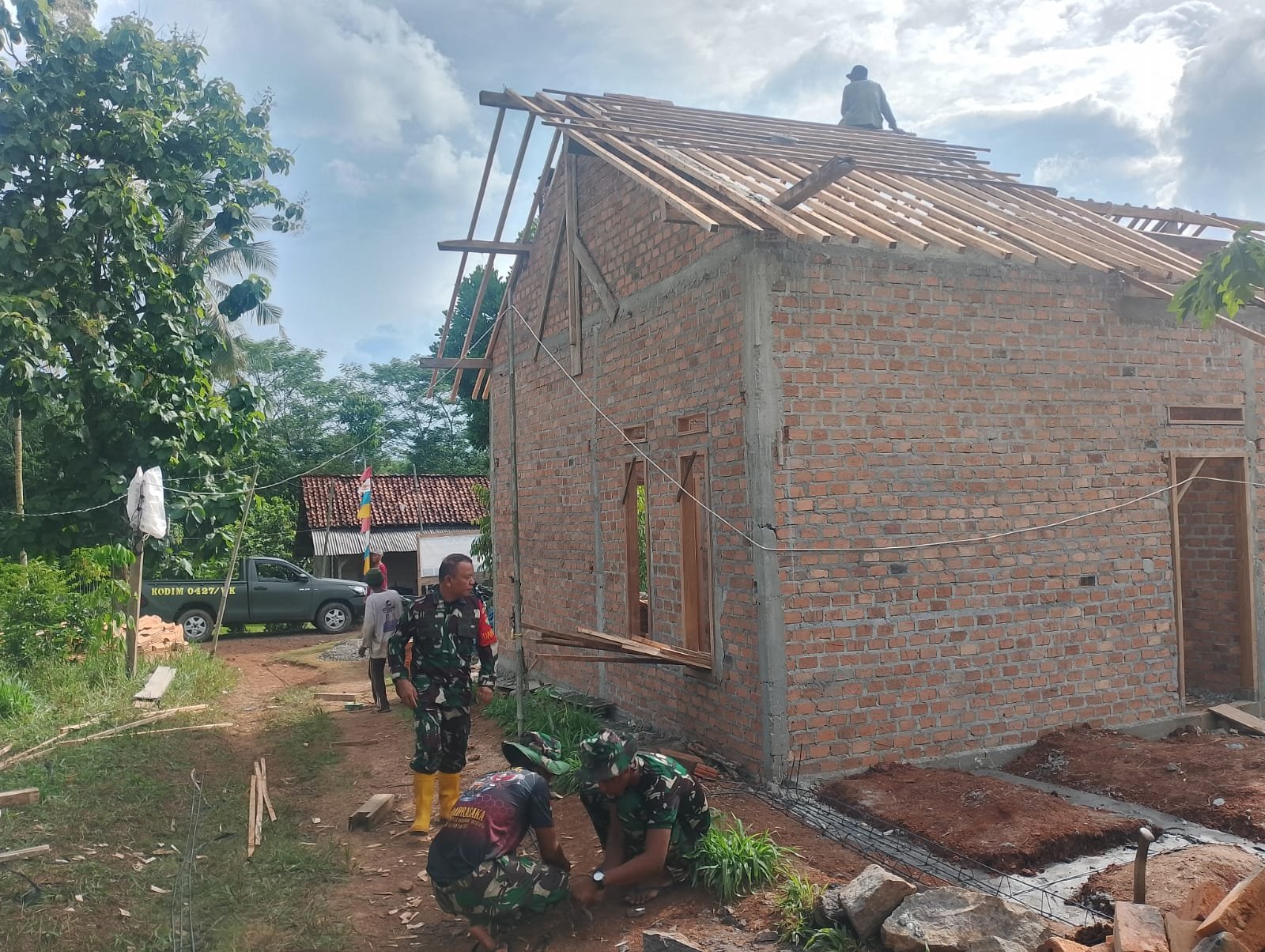 Saat ini, proses pembangunan telah memasuki tahap pemasangan kayu untuk rangka atap. Di lokasi, terlihat anggota Satgas TMMD bersama warga bekerja penuh semangat meskipun cuaca sempat mendung.