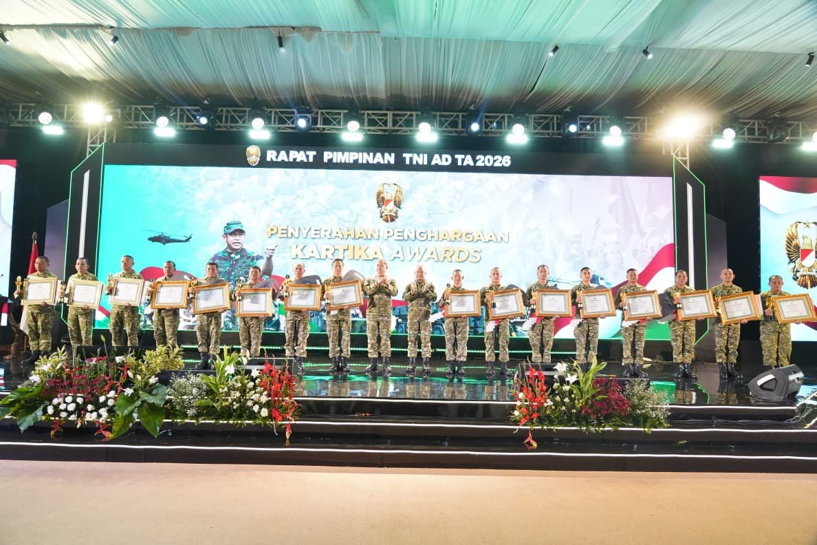 Sebagai bentuk apresiasi atas dedikasi dan pengabdian prajurit, Rapim TNI AD TA 2026 turut dirangkaikan dengan penganugerahan Warga Kehormatan Zeni serta pemberian Kartika Award kepada para komandan satuan dan prajurit berprestasi, termasuk yang berperan aktif dalam bidang penanggulangan bencana alam.
