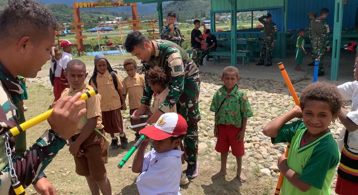 Ramadhan Penuh Keceriaan: Pos Kotis Yonif 751/VJS Satgas Swasembada Latih Sportivitas Anak SD, Ditutup Makan Bergizi di RM Swasembada
