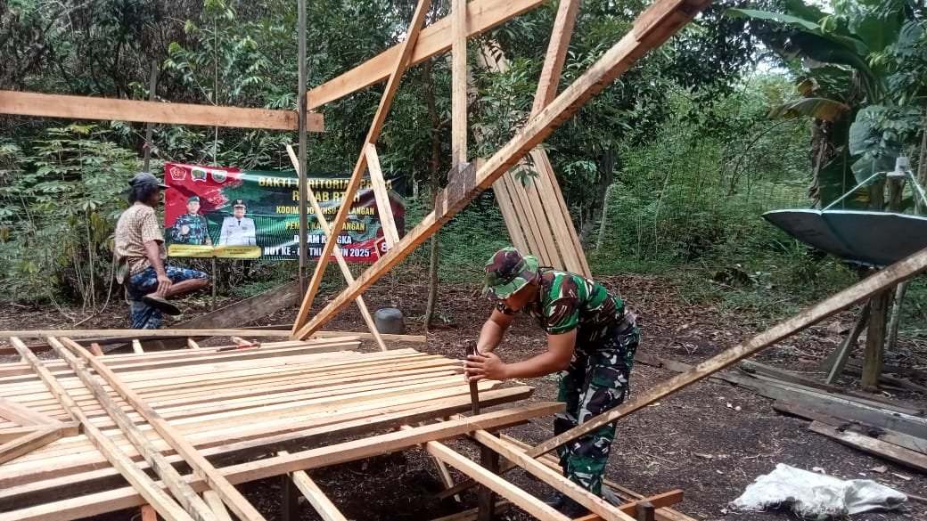 Balangan – Dalam rangka memperingati Hari Ulang Tahun (HUT) ke-80 Tentara Nasional Indonesia (TNI), Kodim 1001/HSU-BLG bersama Pemerintah Daerah Kabupaten Balangan melaksanakan kegiatan Bakti Sosial berupa Rehabilitasi Rumah Tidak Layak Huni (RTLH) bagi warga kurang mampu.