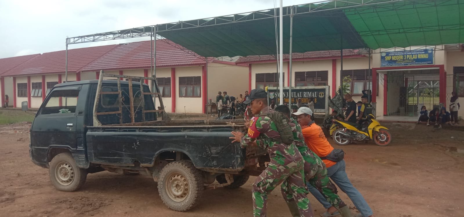 Peristiwa tersebut terjadi saat anggota Satgas TMMD sedang melaksanakan aktivitas pembangunan di wilayah desa. Melihat adanya kendaraan warga yang mengalami kerusakan dan tidak dapat melanjutkan perjalanan, anggota Satgas langsung berinisiatif membantu mendorong serta memeriksa kondisi kendaraan tersebut.