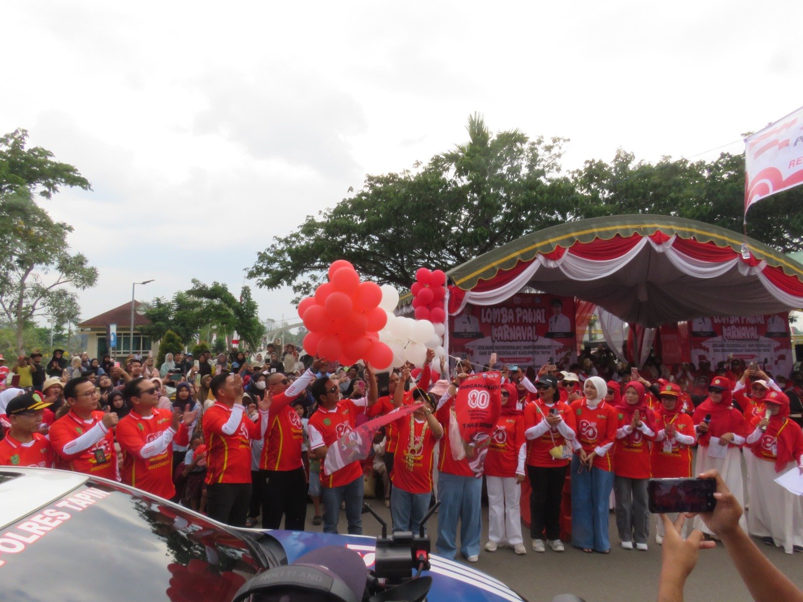 “Kegiatan karnaval ini bukan hanya sekadar hiburan, tetapi juga menjadi wadah untuk memperkuat persatuan, menanamkan nilai kebangsaan, dan melestarikan budaya. Terima kasih kepada semua pihak yang telah berpartisipasi. Semoga kegiatan ini berjalan lancar dan semakin meriah di tahun-tahun mendatang,” ujar Bupati.