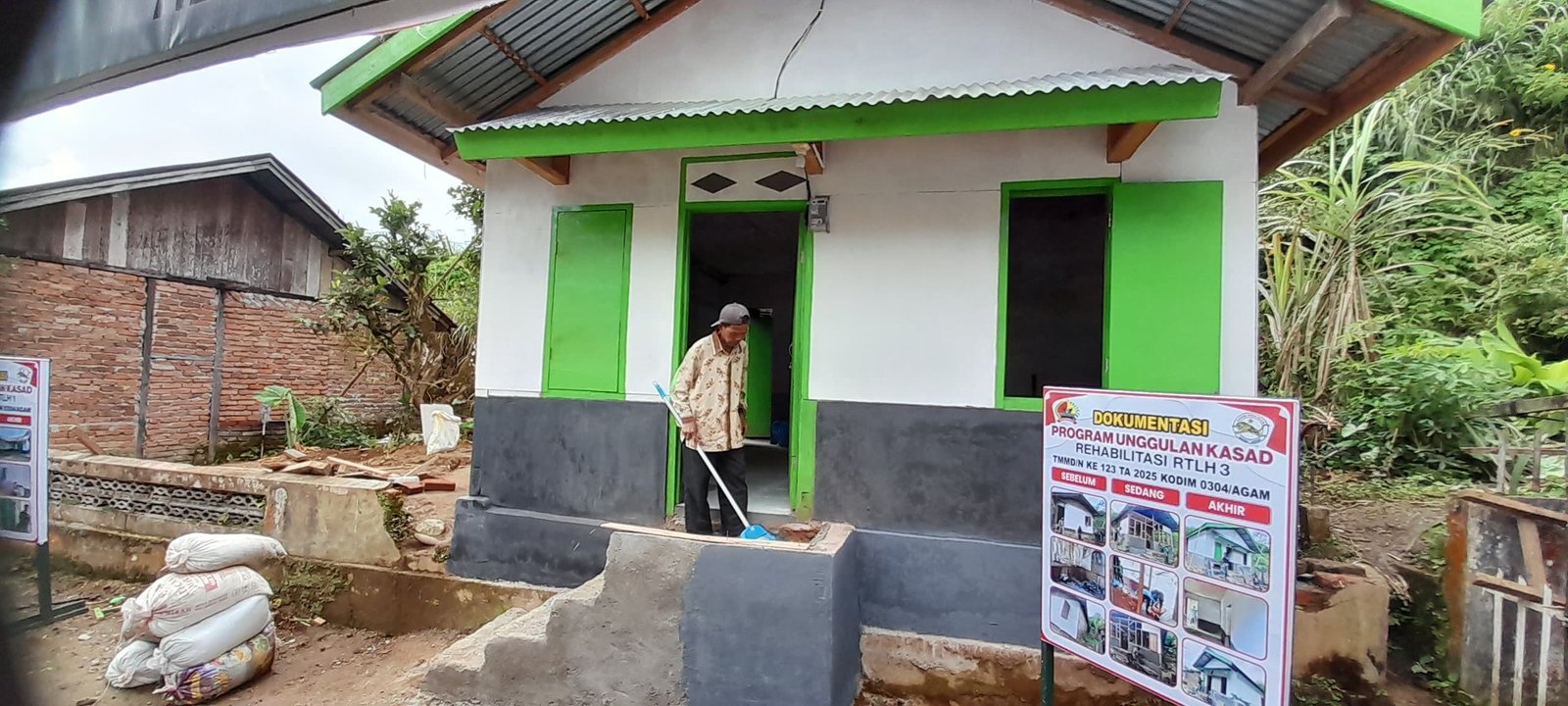 Agam – Pembangunan rehab Rumah Tidak Layak Huni (RTLH) pada program TNI Manunggal Membangun Desa (TMMD) ke 123 Kodim 0304/Agam yang menjadi harapan akhirnya terwujud dengan hunian yang layak.