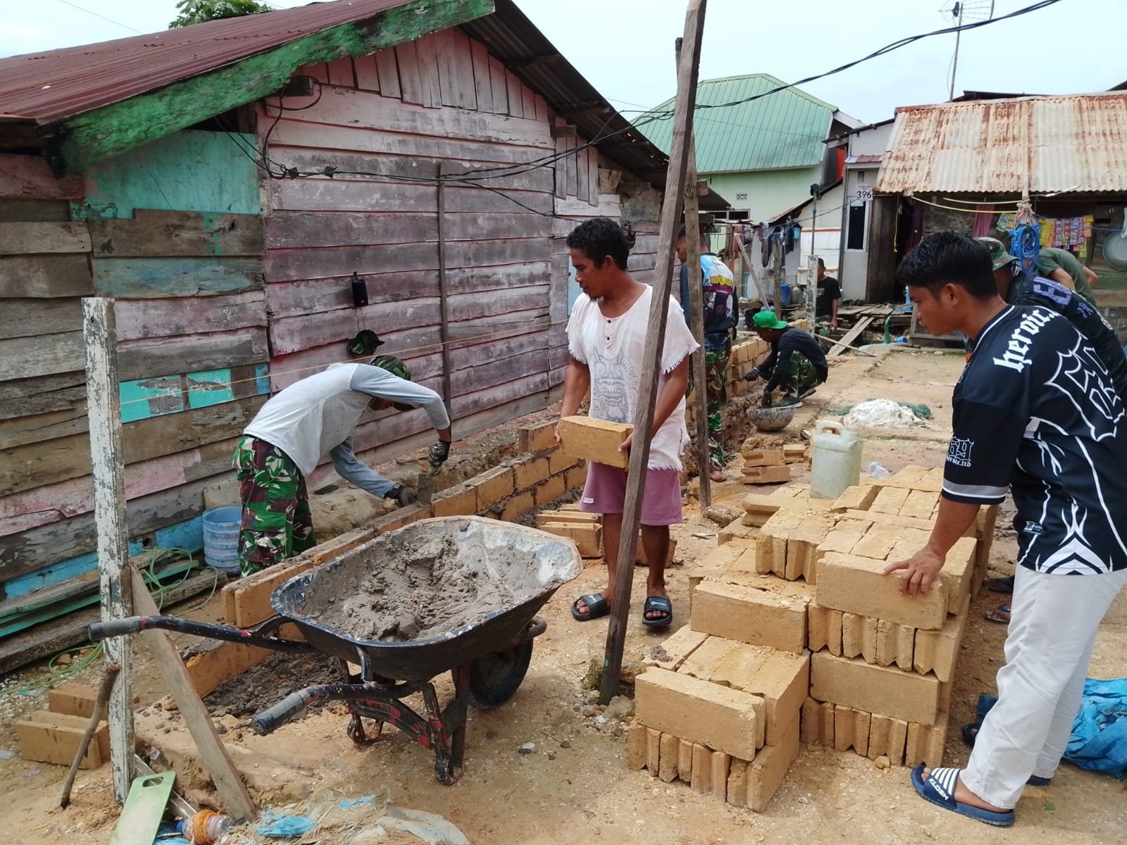 Pada tahap terbaru, personel Satgas bersama masyarakat melaksanakan pemasangan dinding batako yang menjadi struktur utama bangunan. Pengerjaan dilakukan dengan teliti agar rumah yang dibangun memiliki daya tahan maksimal.