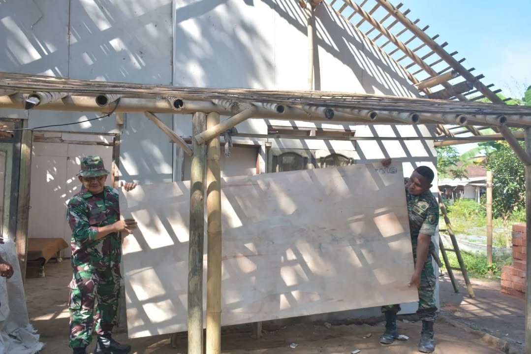 JEMBER – Bu Timah Janda berusia 52 tahun dengan pekerjaan sebagai buruh tani, sangat bahagia rumahnya mulai diobongkar dan dikerjakan oleh pasukan TNI mnunggal Membangun Desa (TMMD) Ke 124 Kodim 0824/Jember, saat kami temui pada Sabtu 26/04/2025, Bu Timah sambih ber kaca-kaca karena sangat haru dan bahagia, krena rumahnya masuk pada program renovasi rumah tidak layak huni (Rutilahu) TMMD Ke 124 Kodim 0824/Jember.