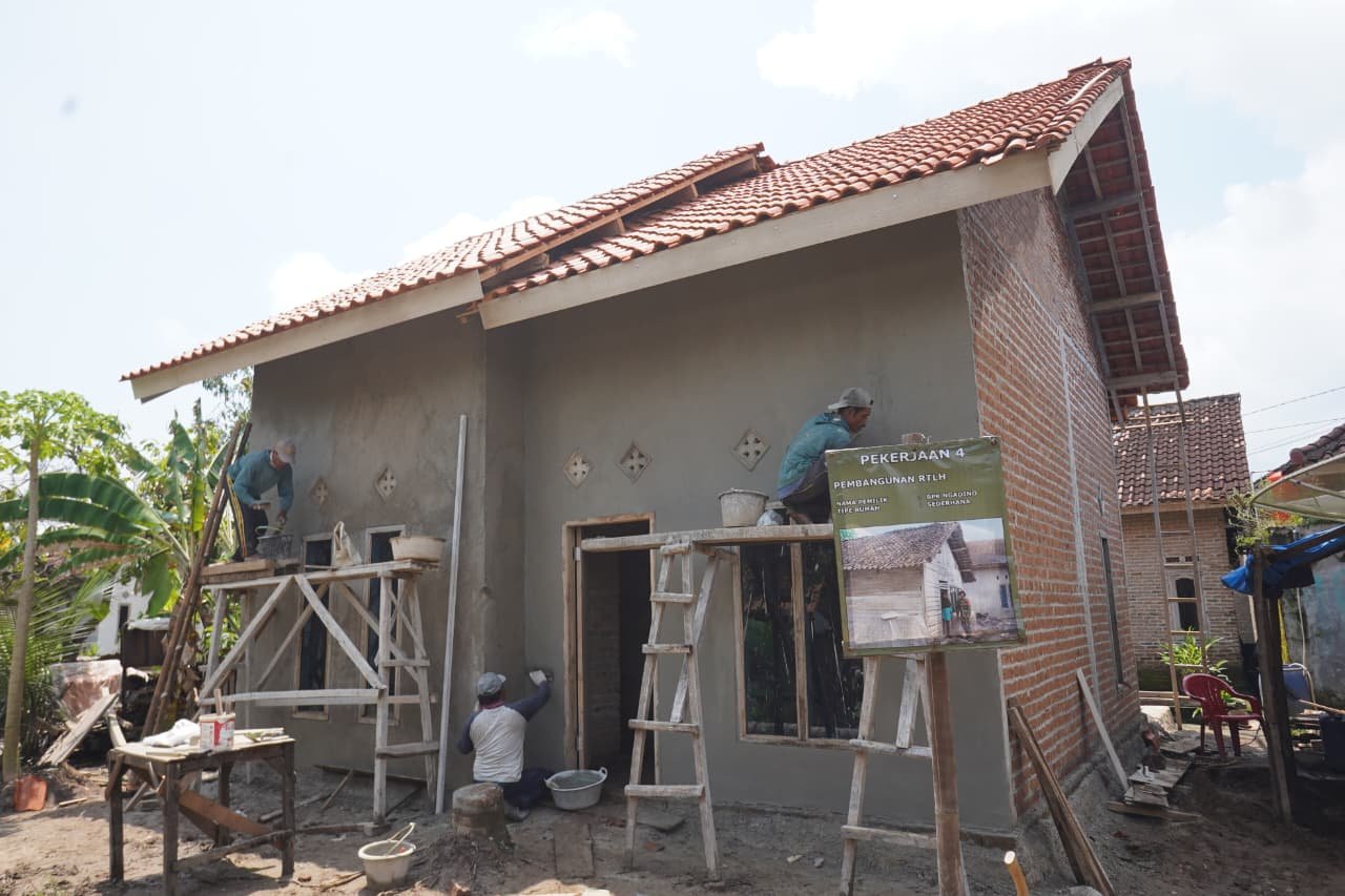 Pesawaran – Pembangunan Rumah Tidak Layak Huni (RTLH) milik Sdr. Ngadino dalam program TMMD ke-127 Kodim 0421/LS terus menunjukkan perkembangan. Saat ini pekerjaan telah memasuki tahap pelesteran dinding bagian depan rumah.