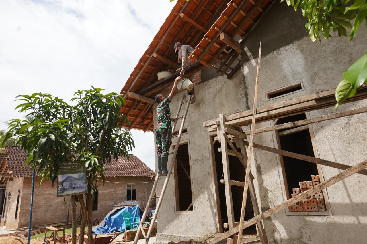 Pesawaran — Harapan itu kini benar-benar berdiri di depan mata. Di Desa Tanjung Rejo, rumah Bapak Khoirul Anwar yang menjadi sasaran RTLH TMMD ke-127 mulai menunjukkan perubahan drastis. Satgas dari Kodim 0421/Lampung Selatan melaksanakan pelesteran dinding bagian depan sekaligus pemasangan genteng atap rumah.