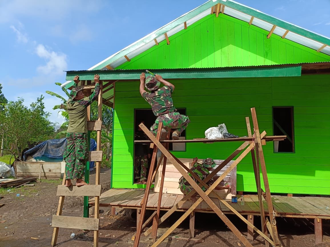 “Saya sangat berterima kasih kepada bapak-bapak TNI. Rumah saya sekarang sudah bagus dan sebentar lagi selesai. Ini bantuan yang tidak akan saya lupakan,” ucapnya haru.