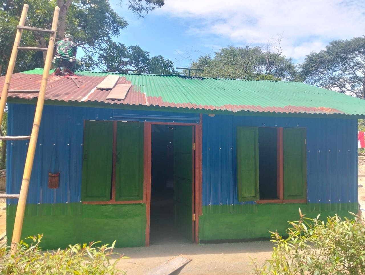 Rumah milik Bapak Heribertus Hama sebelumnya berada dalam kondisi memprihatinkan. Struktur dinding yang rapuh, atap yang bocor, serta lantai tanah membuat rumah tersebut tidak layak dihuni, terutama saat musim hujan. Melalui program TMMD, rumah itu direnovasi total dan kini berdiri lebih kokoh dengan dinding permanen, atap seng baru, dan lantai berkeramik.