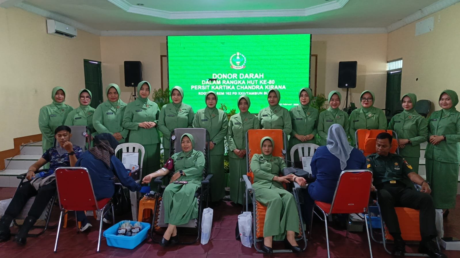 Kotawaringin Timur – Korem 102/Pjg Bersama Kodim 1015/Sampit Gelar Bakti Sosial Donor Darah dalam rangka menyambut HUT Persatuan Istri Prajurit (Persit) Ke 80 yang dilaksanakan di Aula Jendral Sudirman Makorem 102/Pjg, Selasa(03/01/2026)