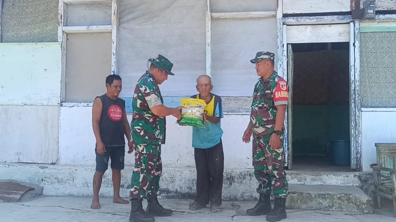 Sambut HUT RI Ke-80 Koramil 02 Pamona Bagikan Bendera Merah Putih dan Beras Kepada Warga Kurang Mampu