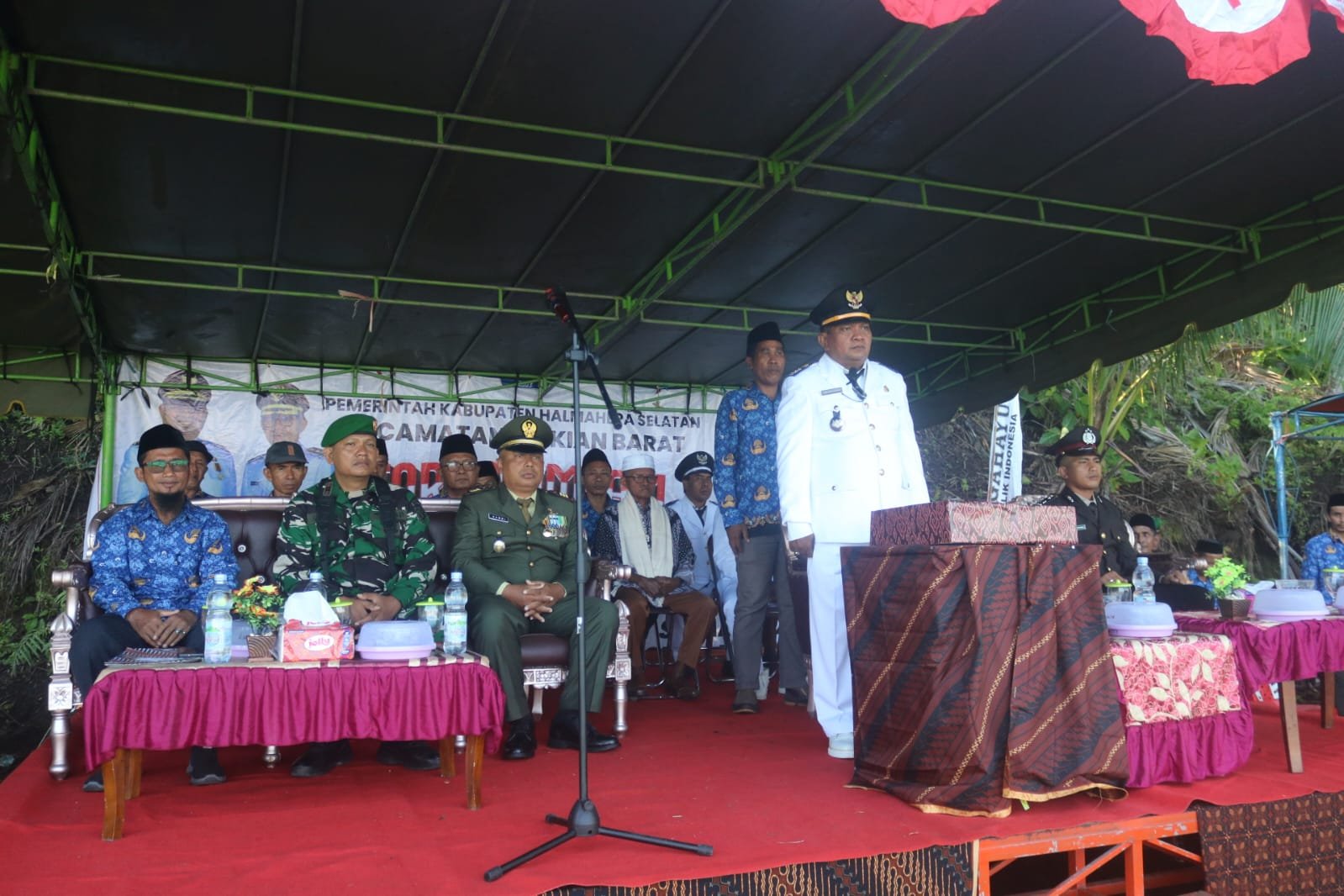 Bertindak sebagai inspektur upacara Camat Makian Barat Ersan Ahmad, dan Komandan Upacara Sertu Bahar, Dan diikuti oleh Personil Satgas TMMD, Anak Sekolah SD, SMP, SMA, ASN sekecamatan Makian Barat Serta Para Undangan.