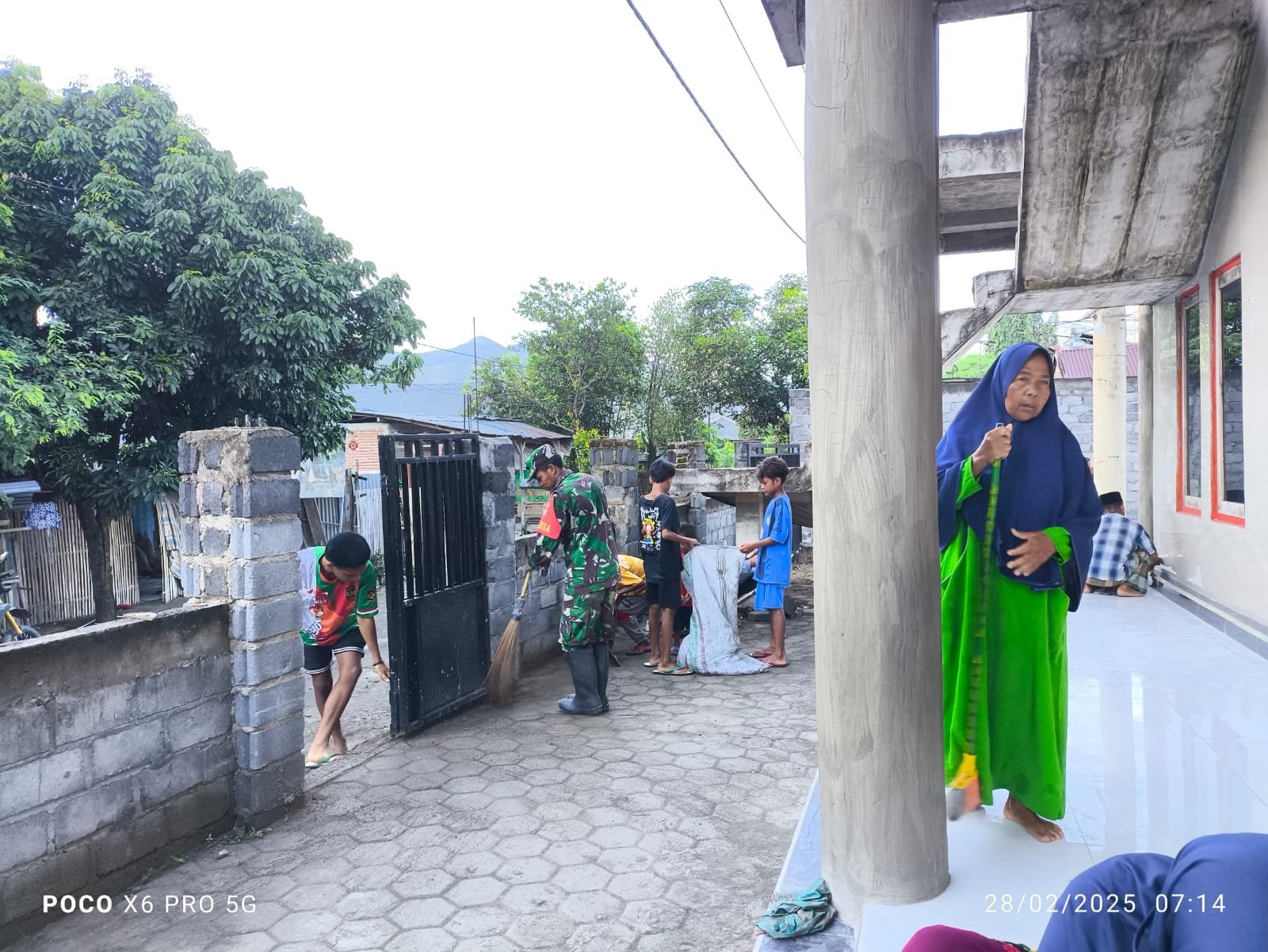 Bima – Sambut bulan suci Ramadhan, Serka Suhardi, Babinsa Desa Risa Koramil 1608-04/Woha, memimpin kegiatan gotong royong pembersihan Masjid Al-Ihwan bersama masyarakat setempat. Kegiatan ini meliputi pembersihan area dalam dan luar masjid, pembersihan got yang tertimbun tanah, serta pengangkatan sampah dan batu di pinggir jalan depan masjid yang berlokasi di RT 15 RW 07 Dusun Guna Waktu, Desa Risa, Kecamatan Woha, Kabupaten Bima.(28/02/2025)
