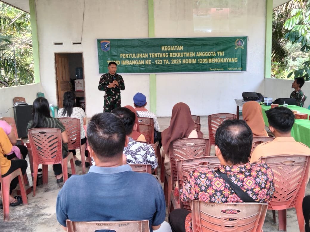 Bengkayang – Satgas TMMD imbangan Ke-123 Kodim 1209/Bky terus sasar dan apliasikan program baik pekerjaan fisik maupun non fisik,dalam pekerjaan non fisik kali ini melakukan sosialisasi rekrutmen Calon Prajurit TNI,di Aula Desa.Sekida.Kec.Jagoi Babang,Kab.Bengkayang.
