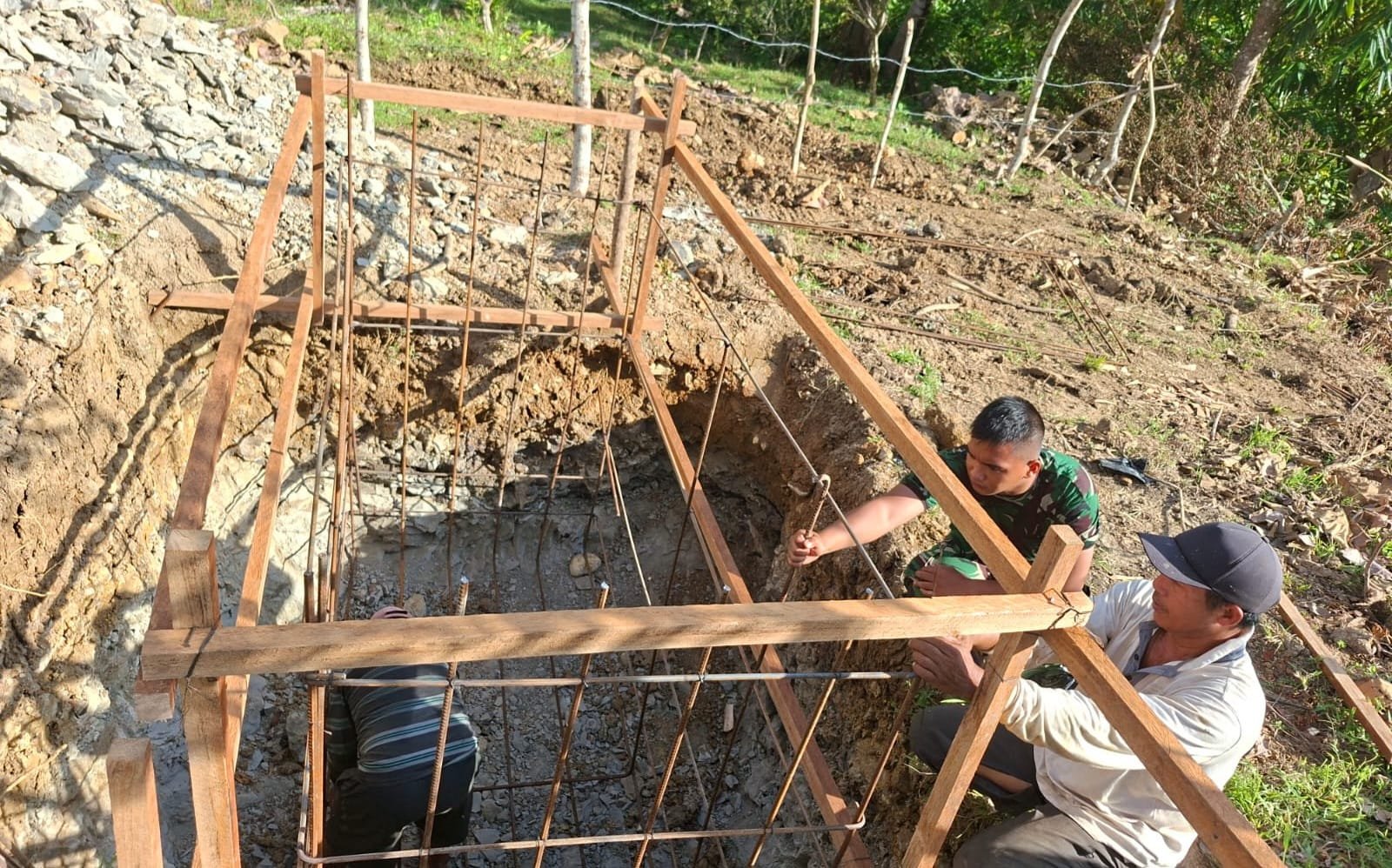 Dalam proses pembangunan pembuatan pembesian abotmen dan melangsir material batu pondasi jembatan gantung perintis tersebut, tampak berbaur bersama warga dan turut terlibat langsung dalam berbagai pekerjaan fisik.