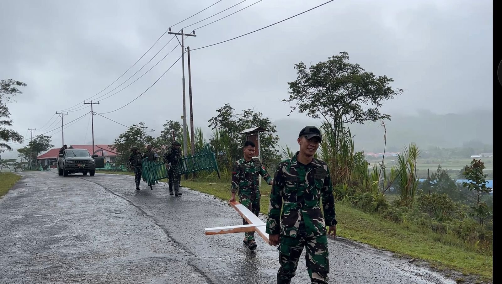 Oksibil, Pegunungan Bintang — Dalam rangka menyambut Hari Raya Paskah, Satgas Swasembada Yonif 751/Vira Jaya Sakti (VJS) melalui Pos Komando Taktis (Kotis) Oksibil melaksanakan kegiatan teritorial berupa menghias gereja yang berada di sekitar pos. Kegiatan ini dipimpin oleh Pasi Ter Satgas Yonif 751/VJS, Letda Inf Rinjani, sebagai bentuk dukungan terhadap kekhidmatan ibadah umat Kristiani sekaligus mempererat kebersamaan TNI dan masyarakat di wilayah perbatasan. (Kamis,26/3/2026).