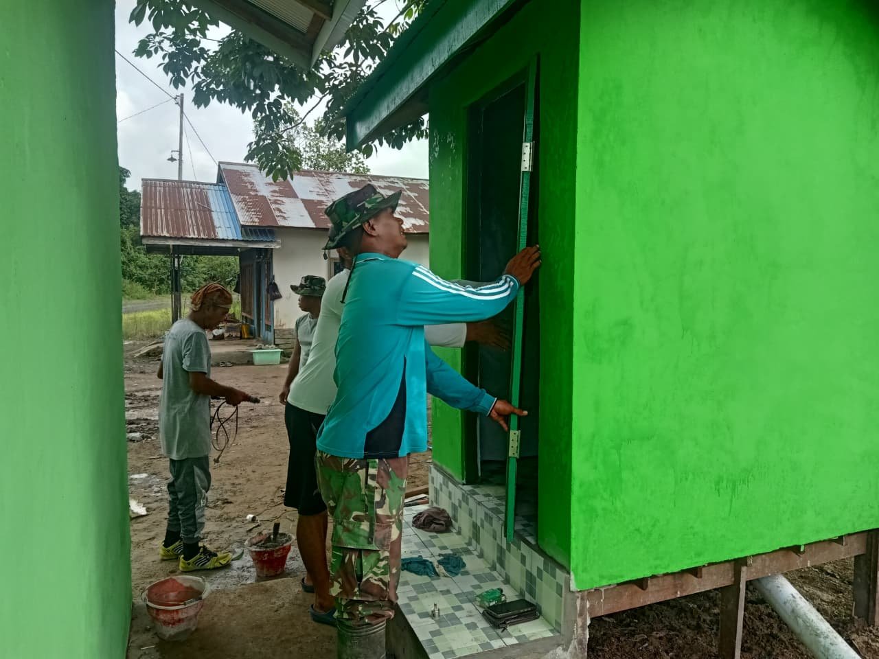 “Hari ini anggota Satgas bersama masyarakat mulai memasang pintu pada bangunan WC. Ini menandakan progres pembangunan sudah hampir rampung. Kami berharap dalam waktu dekat bisa segera digunakan oleh warga,” ujarnya.