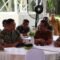 Tampak anggota Satgas TMMD bersama masyarakat setempat bekerja bergotong royong membangun kedudukan tandon air. Semangat kebersamaan terlihat dari setiap langkah pekerjaan yang dilakukan bersama tanpa kenal lelah.