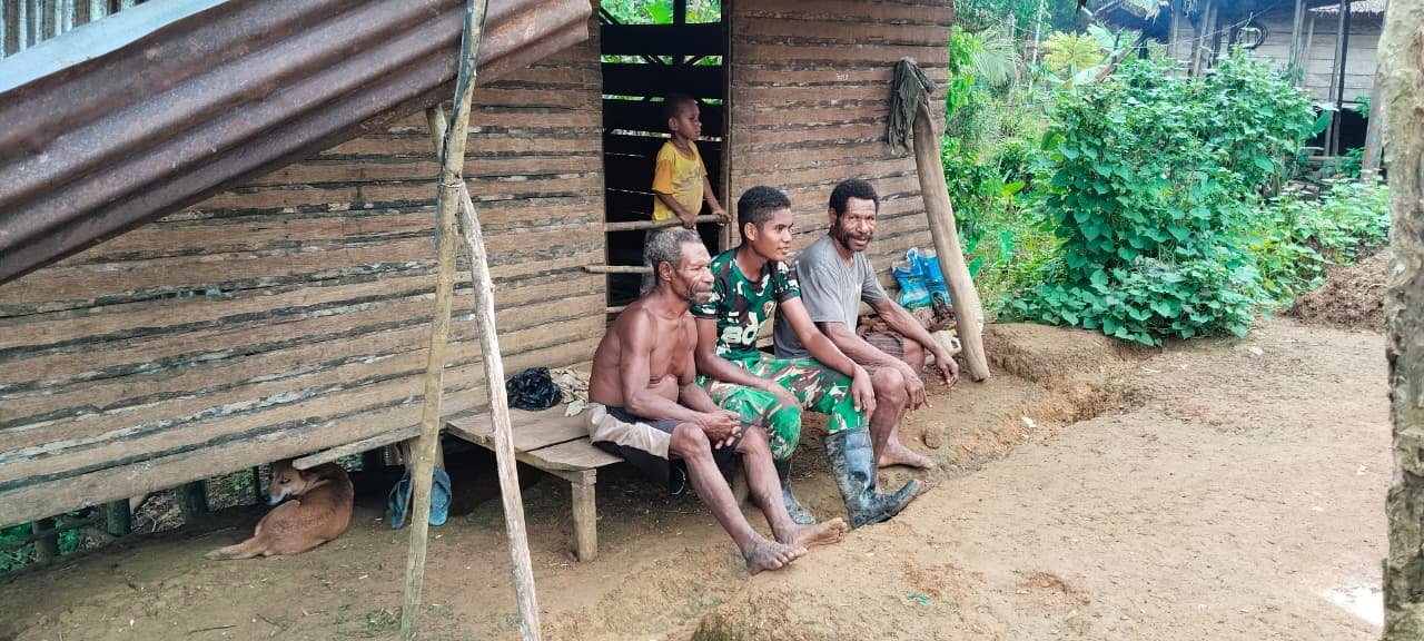 Pada Rabu (22/10/2025), salah satu anggota Satgas TMMD, Prada Daniel, tampak melaksanakan Komsos dengan warga di teras rumah panggung. Dalam suasana penuh keakraban, ia berdialog santai, mendengarkan masukan, serta memberikan penjelasan mengenai progres pembangunan jalan, sarana air bersih, dan fasilitas MCK yang menjadi sasaran fisik TMMD.