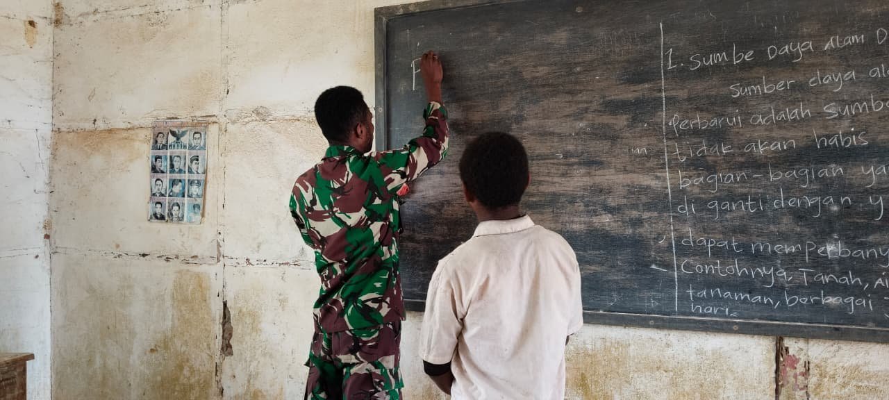 Boven Digoel – Dalam rangka menumbuhkan semangat nasionalisme sejak usia dini, Personel Satuan Tugas (Satgas) TNI Manunggal Membangun Desa (TMMD) ke-126 Kodim 1711/Boven Digoel melaksanakan kegiatan penyuluhan Wawasan Kebangsaan di SD YPPK St. Isidorus Waropko, Distrik Waropko, Kabupaten Boven Digoel, pada Kamis (23/10/2025).
