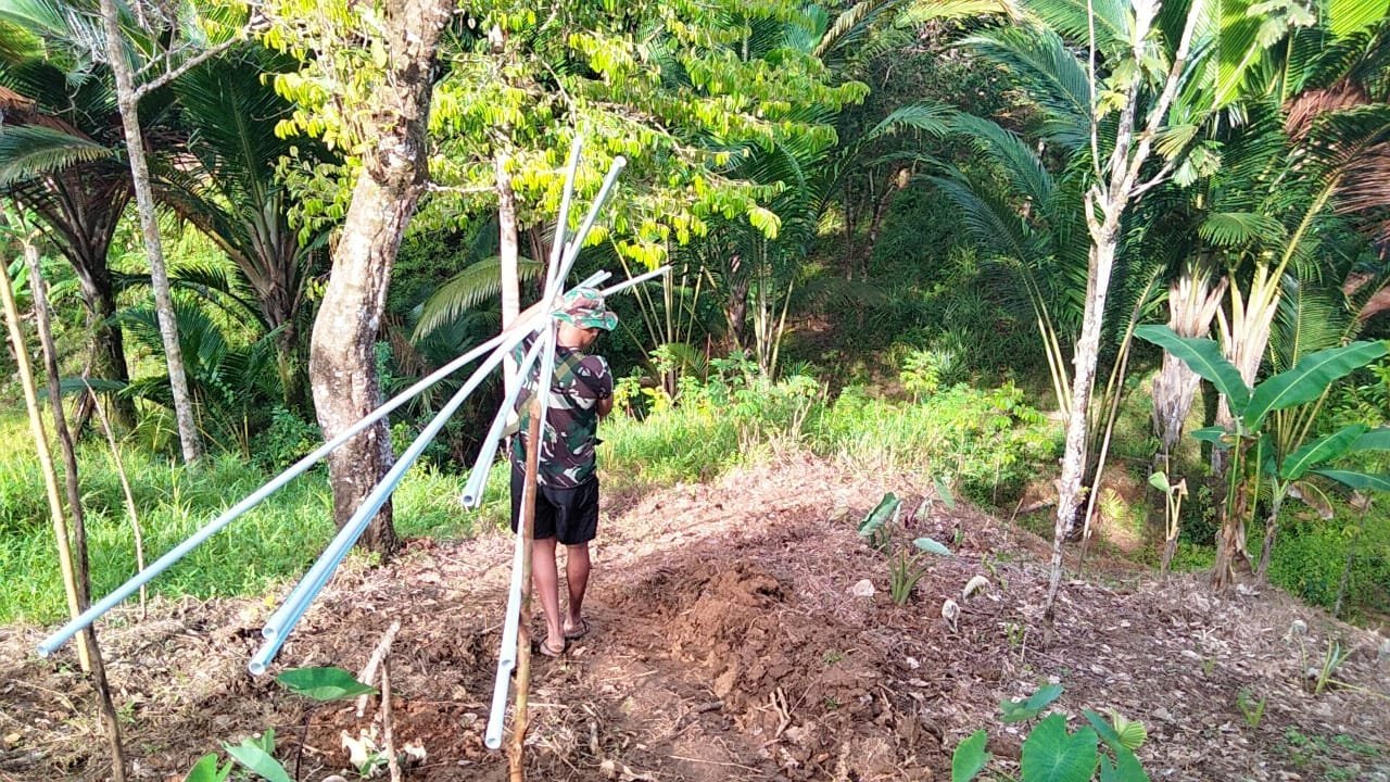 Pekerjaan pipanisasi ini menjadi sasaran tambahan TMMD untuk membantu masyarakat yang selama ini mengalami kesulitan mendapatkan air bersih, terutama pada musim kemarau. Jalur pipa dibentang dari sumber air di lembah menuju pemukiman warga sejauh ratusan meter.