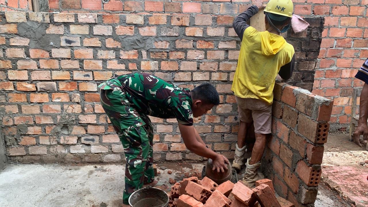 Banyuasin – Upaya percepatan pembangunan RTLH milik Ibu Suwarti terus dilakukan oleh personel Satgas TMMD ke-127 Kodim 0430/BA bersama masyarakat Desa Wonosari, Kecamatan Pulau Rimau.