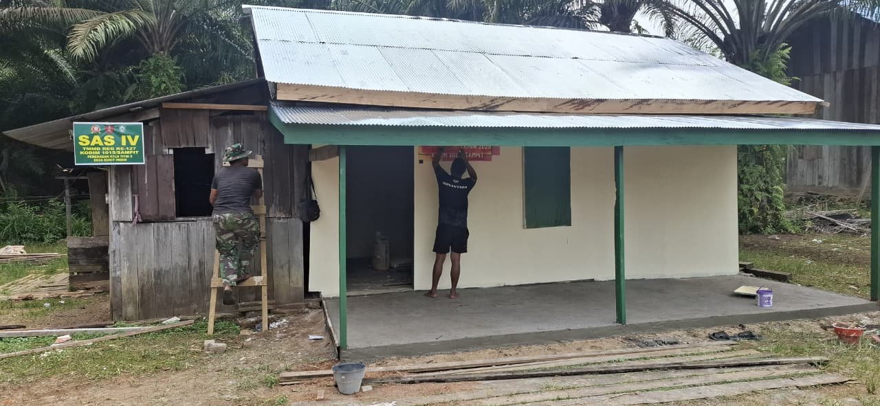 Kotawaringin Timur – Program TNI Manunggal Membangun Desa (TMMD) ke-127 Kodim 1015/Sampit terus menunjukkan perkembangan positif. Salah satu sasaran fisik berupa rehabilitasi Rumah Tidak Layak Huni (RTLH) milik warga di Desa Bukit Indah, Kecamatan Telaga Antang, Kabupaten Kotawaringin Timur, kini telah memasuki tahap finishing, Senin (09/03/2026).