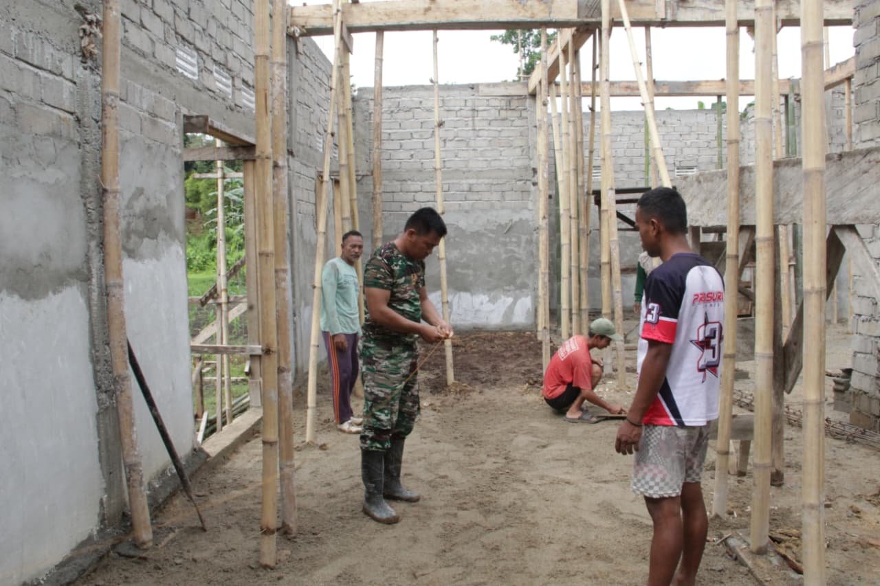 Personel Satgas TMMD bersama warga setempat tampak kompak melaksanakan pengerjaan lanjutan. Fokus pekerjaan kali ini meliputi penyempurnaan struktur bangunan, pemasangan dinding, serta penataan bagian dalam masjid agar progres pembangunan terus meningkat.
