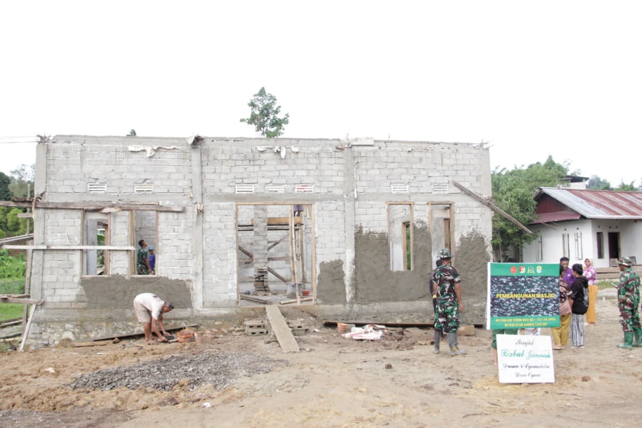 Pembangunan rumah ibadah tersebut menjadi salah satu sasaran fisik program TMMD tahun ini. Pada pelaksanaan hari ini, personel Satgas bersama masyarakat fokus pada pengerjaan dinding dan perapian struktur bangunan agar progres berjalan maksimal.