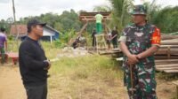 Pada tahapan terbaru pembangunan, para prajurit bersama warga setempat melakukan pemasangan gelagar kayu sebagai kerangka utama atap rumah.