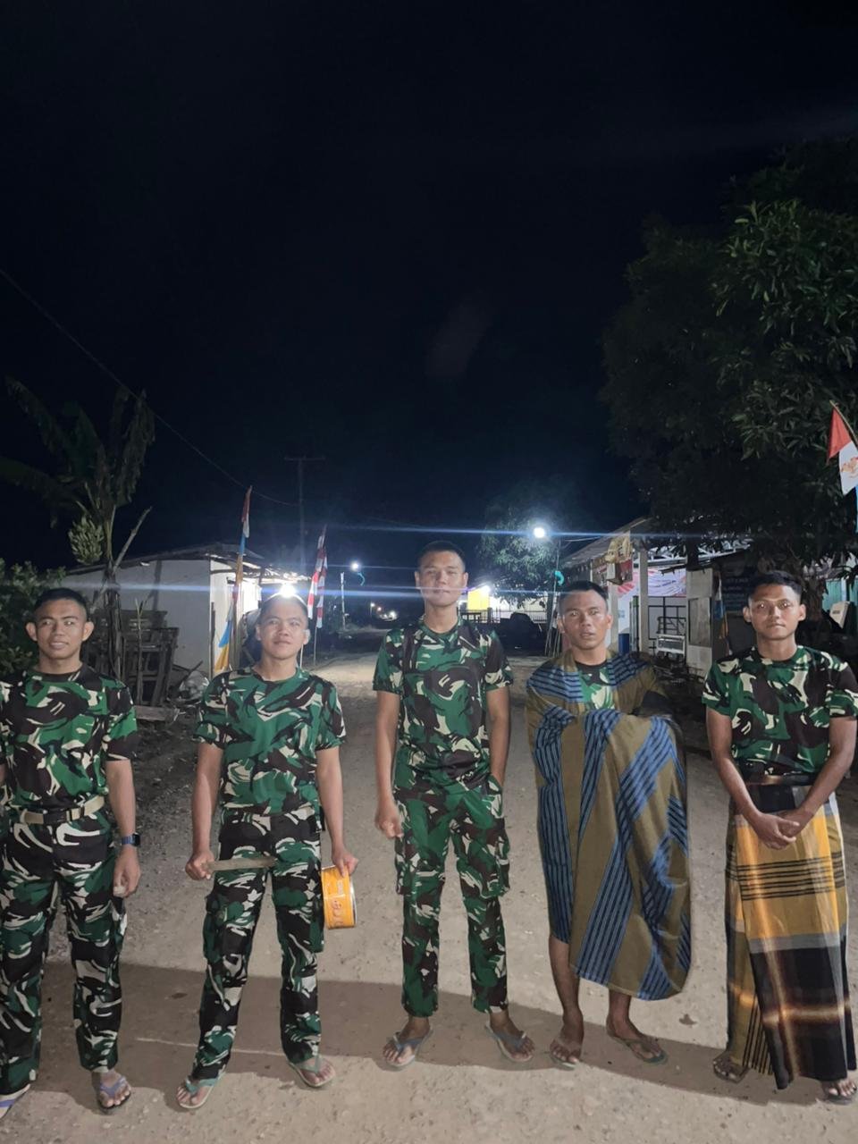 Banyuasin – Anggota Satgas TMMD 127 dari Kodim 0430/BA melaksanakan patroli keliling membangunkan warga untuk sahur di sekitar Desa Wonosari, Kecamatan Pulau Rimau, Kabupaten Banyuasin.