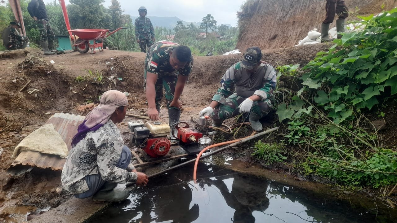 Agam – Satgas TMMD ke-123 Kodim 0304/ Agam kejar target cor beton pada sasaran pengecoran jalan di Jorong Pahambatan, Nagari Balingka, Kabupaten Agam, melaksanakan penyiraman air secara berkala, Sabtu (15/03/2025).