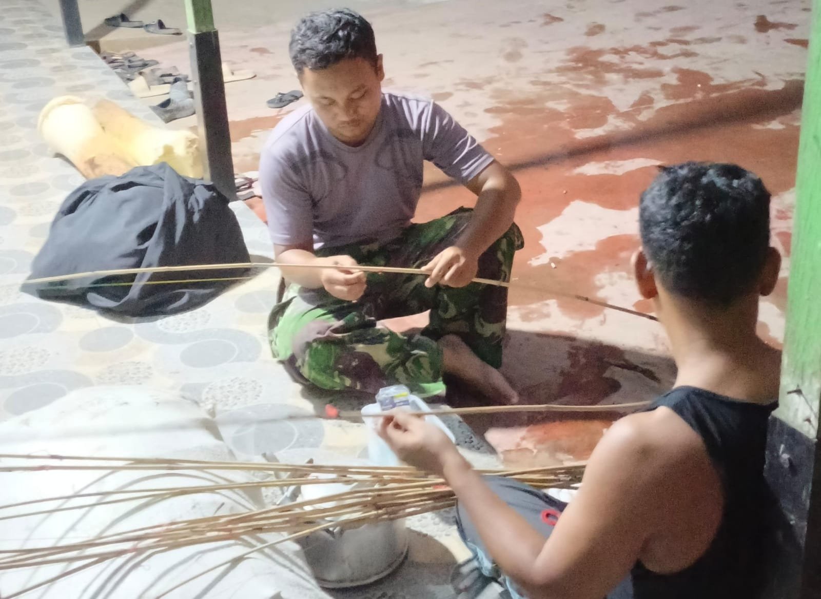 Mempawah – Di sela-sela padatnya pembangunan fisik program TMMD Ke-124, anggota Satgas tampak asyik bersama warga membuat joran pancing dari bambu. Kegiatan ini bukan hanya untuk persiapan mancing bersama, tapi juga menjadi sarana mempererat hubungan emosional antara prajurit dan masyarakat.