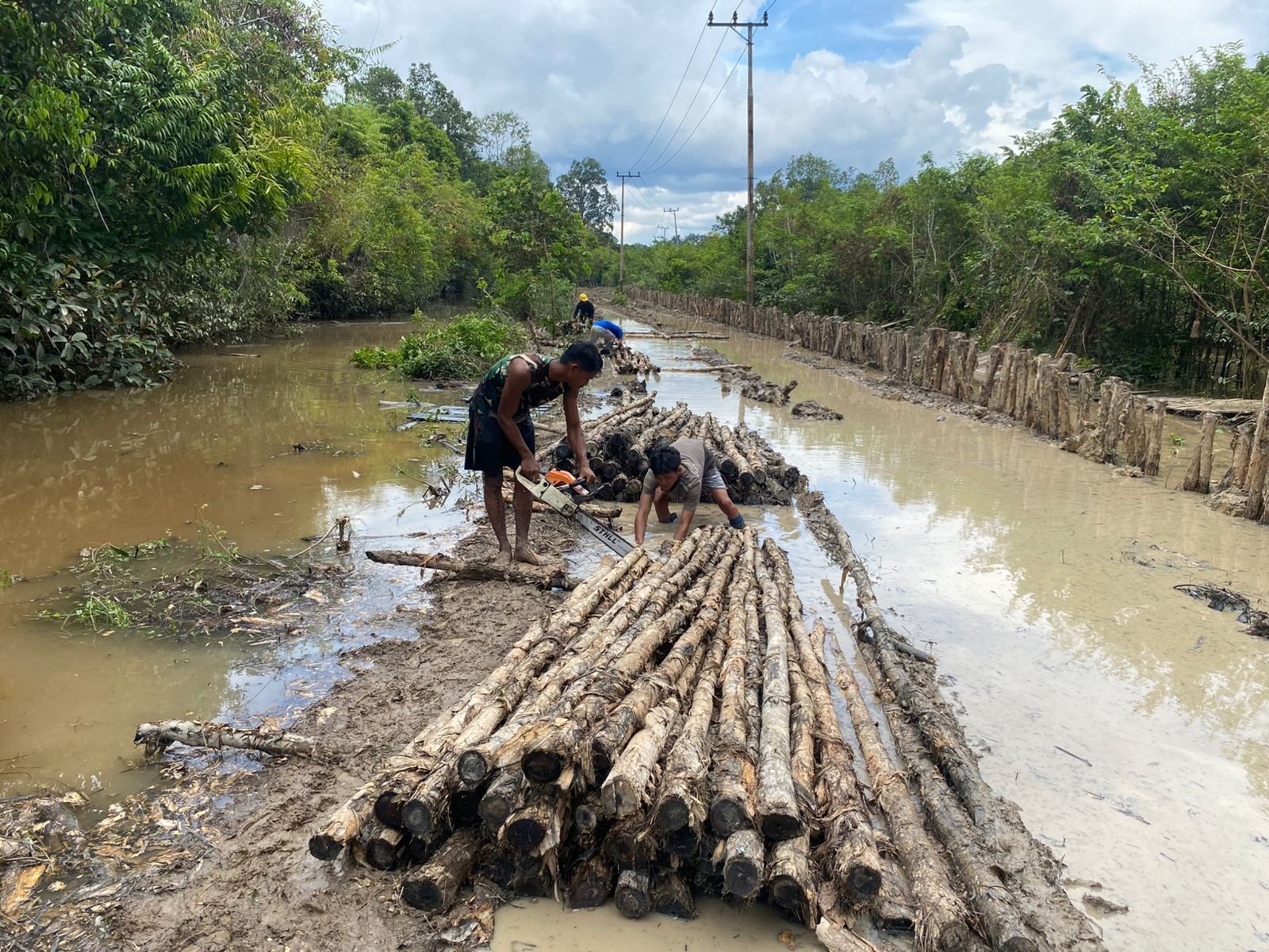 Kegiatan tersebut melibatkan gotong royong antara TNI dan masyarakat setempat untuk memastikan stok kayu cerucuk selalu tersedia di lapangan. Dengan begitu, pengerjaan pembukaan jalan bisa terus berlangsung tanpa hambatan.