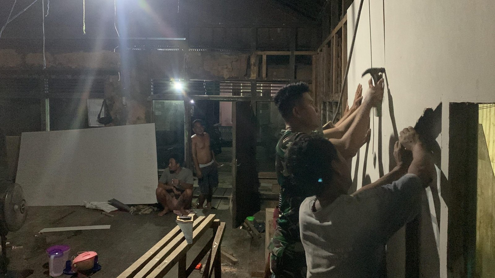 Pengerjaan dilakukan hingga malam hari dengan semangat kebersamaan, mengatasi berbagai tantangan termasuk pencahayaan minim. Kegiatan ini mencerminkan kekompakan TNI dan rakyat dalam membangun desa dan meningkatkan kesejahteraan masyarakat.